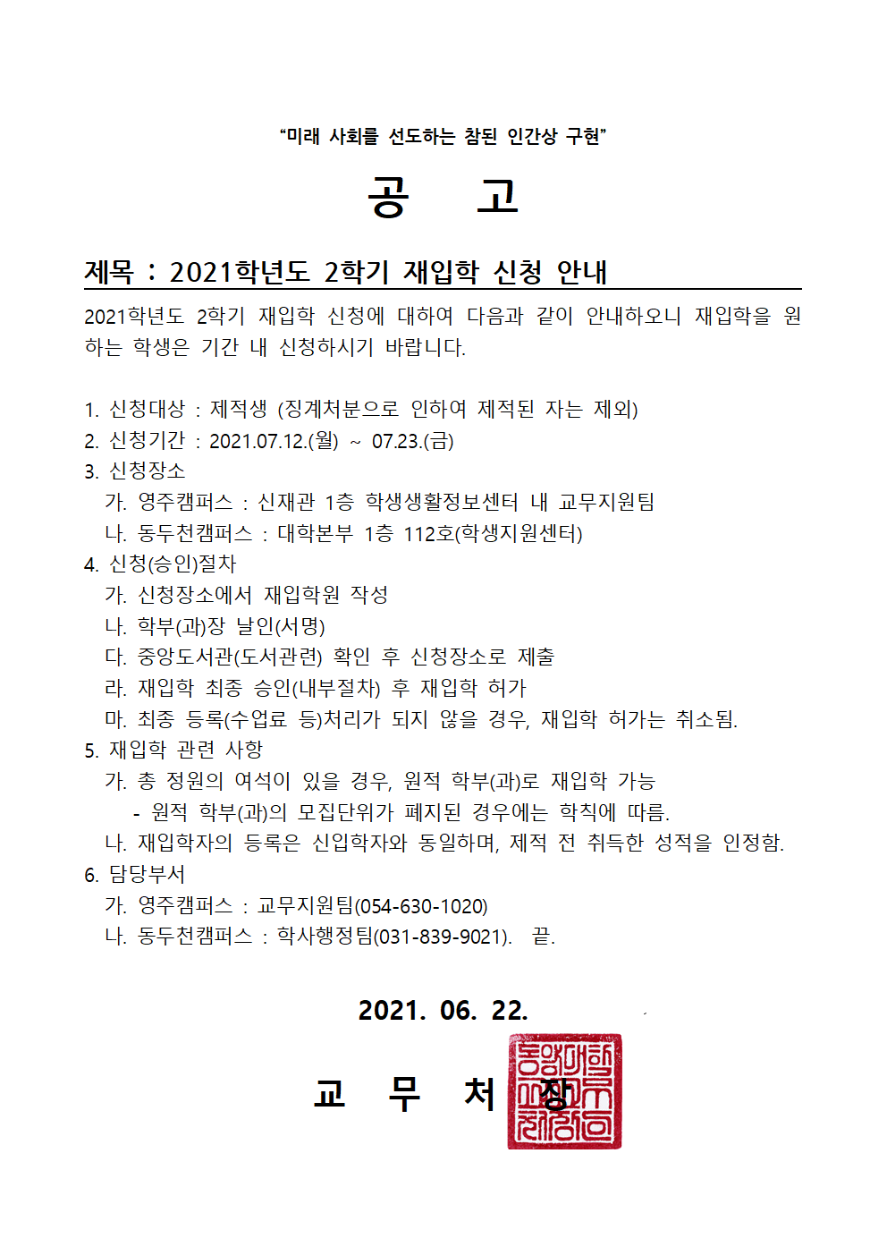 HOME   >   공지사항   >   2021학년도 2학기 재입학 신청 안내
