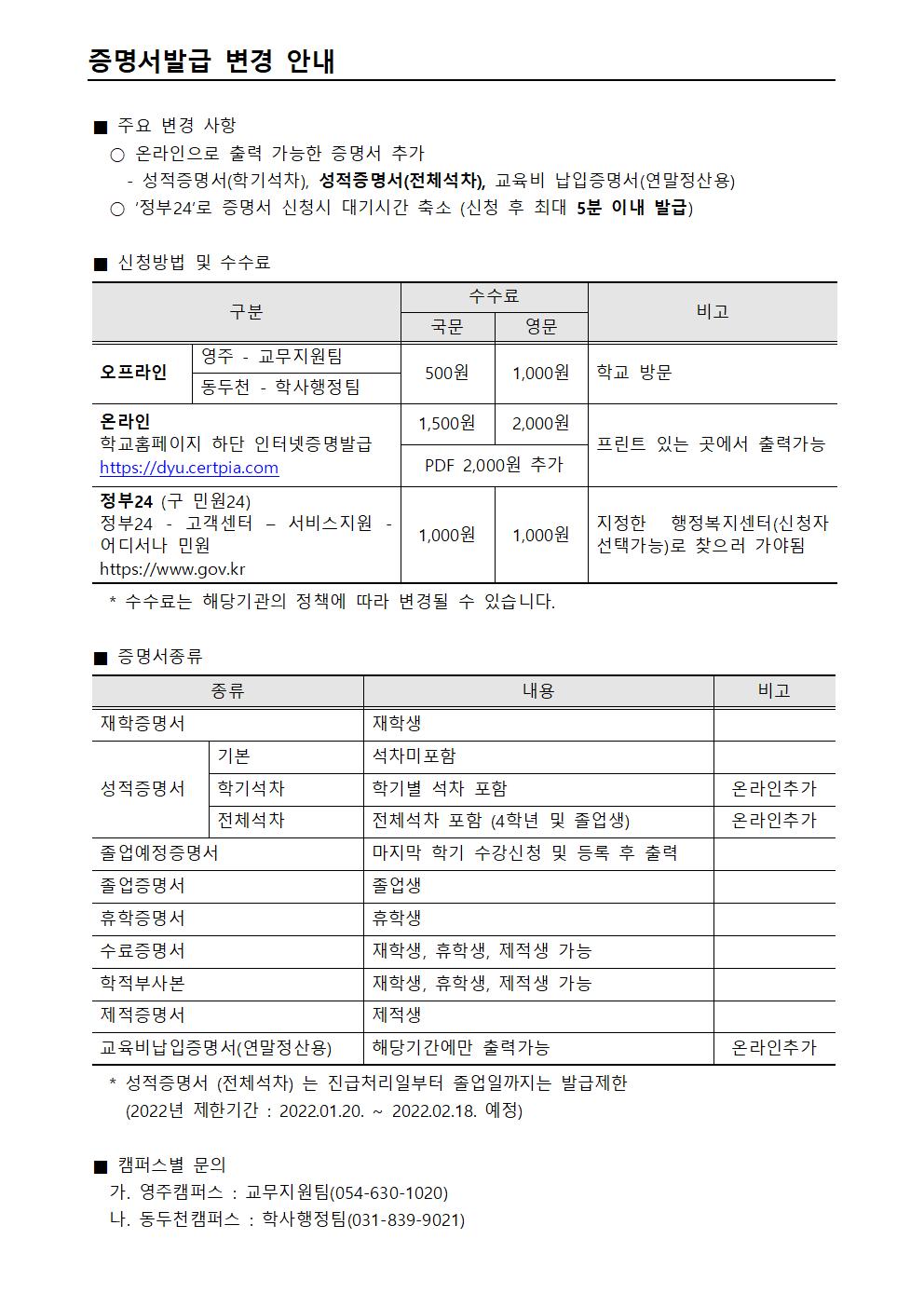 > 공지사항 > 증명서 온라인 발급 추가 안내