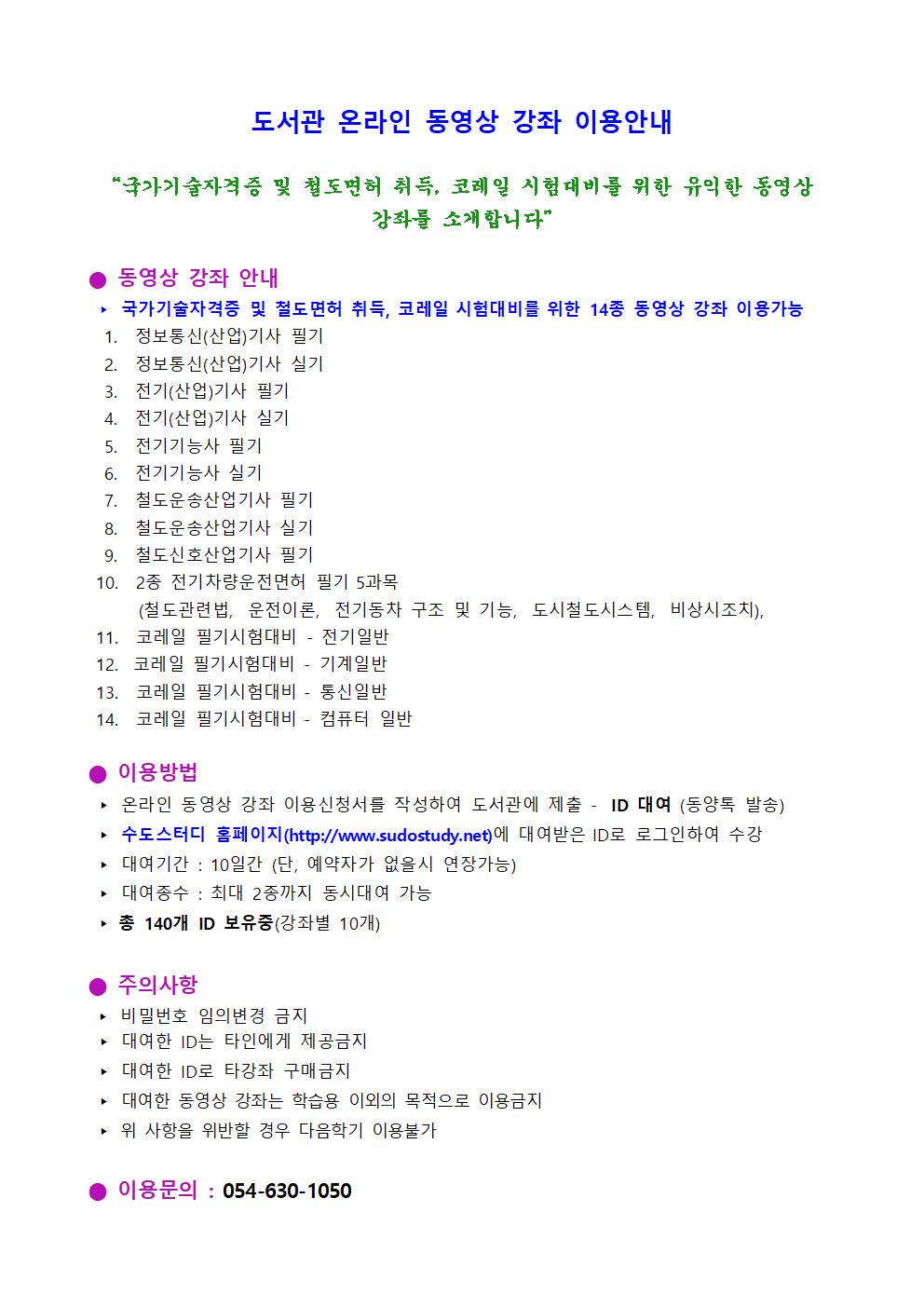 도서관 온라인 동영상 강좌 이용안내
