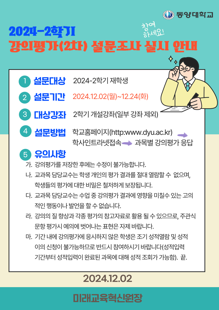 2024-2학기 강의평가(2차) 설문조사 실시 안내