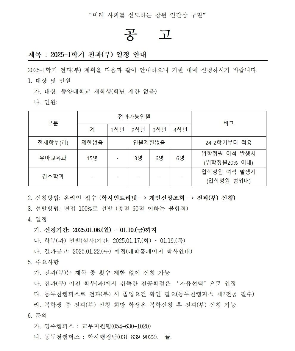 > 공지사항 > 2025-1학기 전과(부) 일정 안내