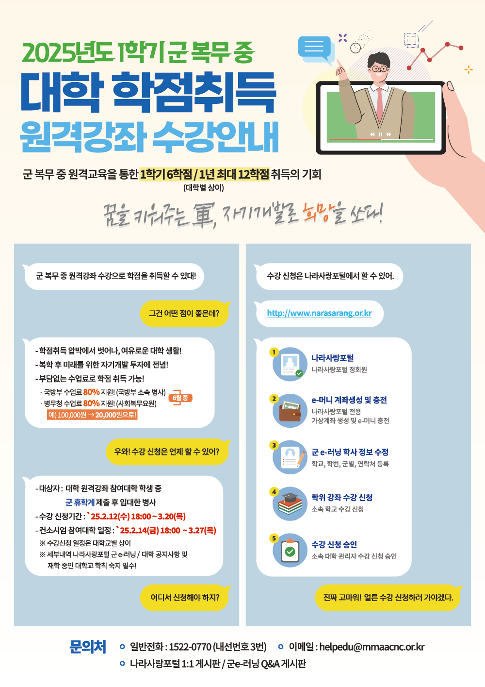 2025-1 군복무중 대학 학점취득 원격강좌 수강안내