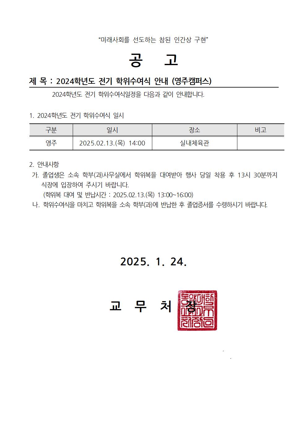 2024학년도 전기 학위수여식 안내(영주캠퍼스)