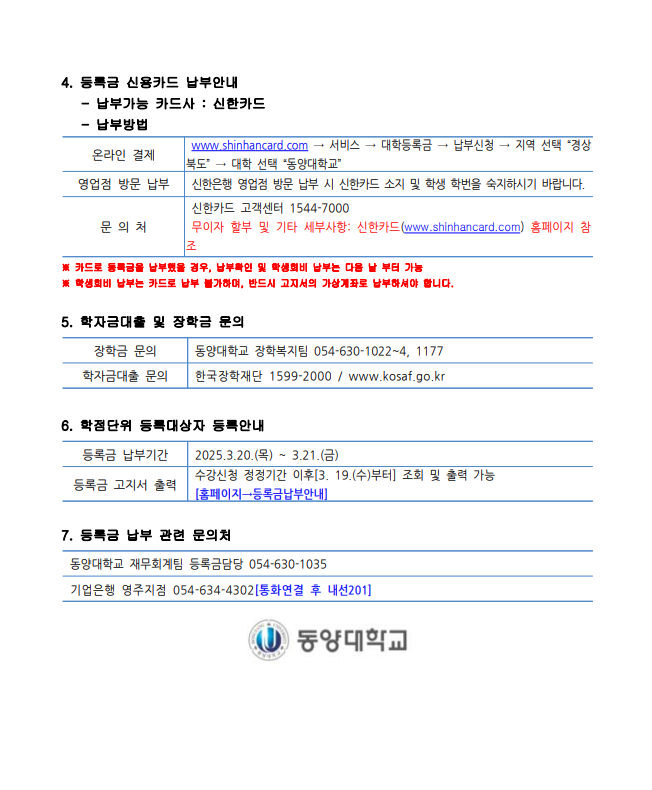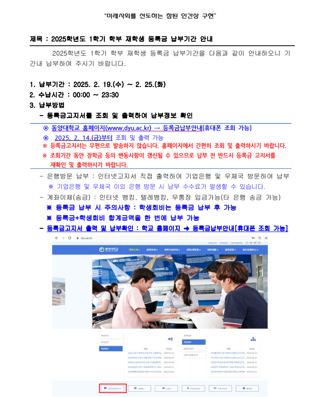 > 공지사항 > 2025학년도 1학기 학부 재학생 등록금 납부 안내