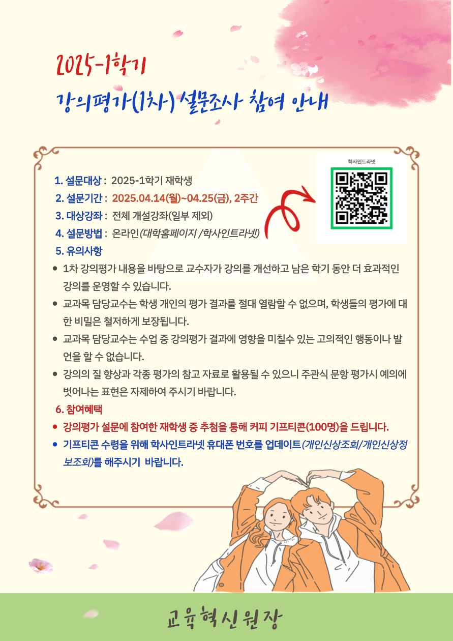 2025-1학기 강의평가(1차) 실시 안내